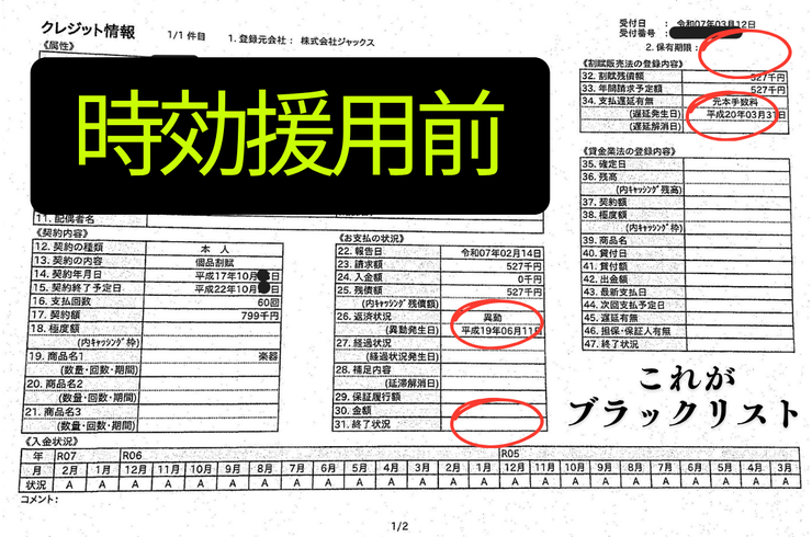 れいわクレジット管理とアコムとジャックスの3社に時効援用をしたお客様が、借金を時効で消してから信用情報を開示しました。