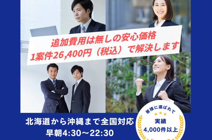 北海道から沖縄まで全国対応、相談は無料、追加費用は無しの安心価格、時効援用1案件26,400円(税込)で解決します。